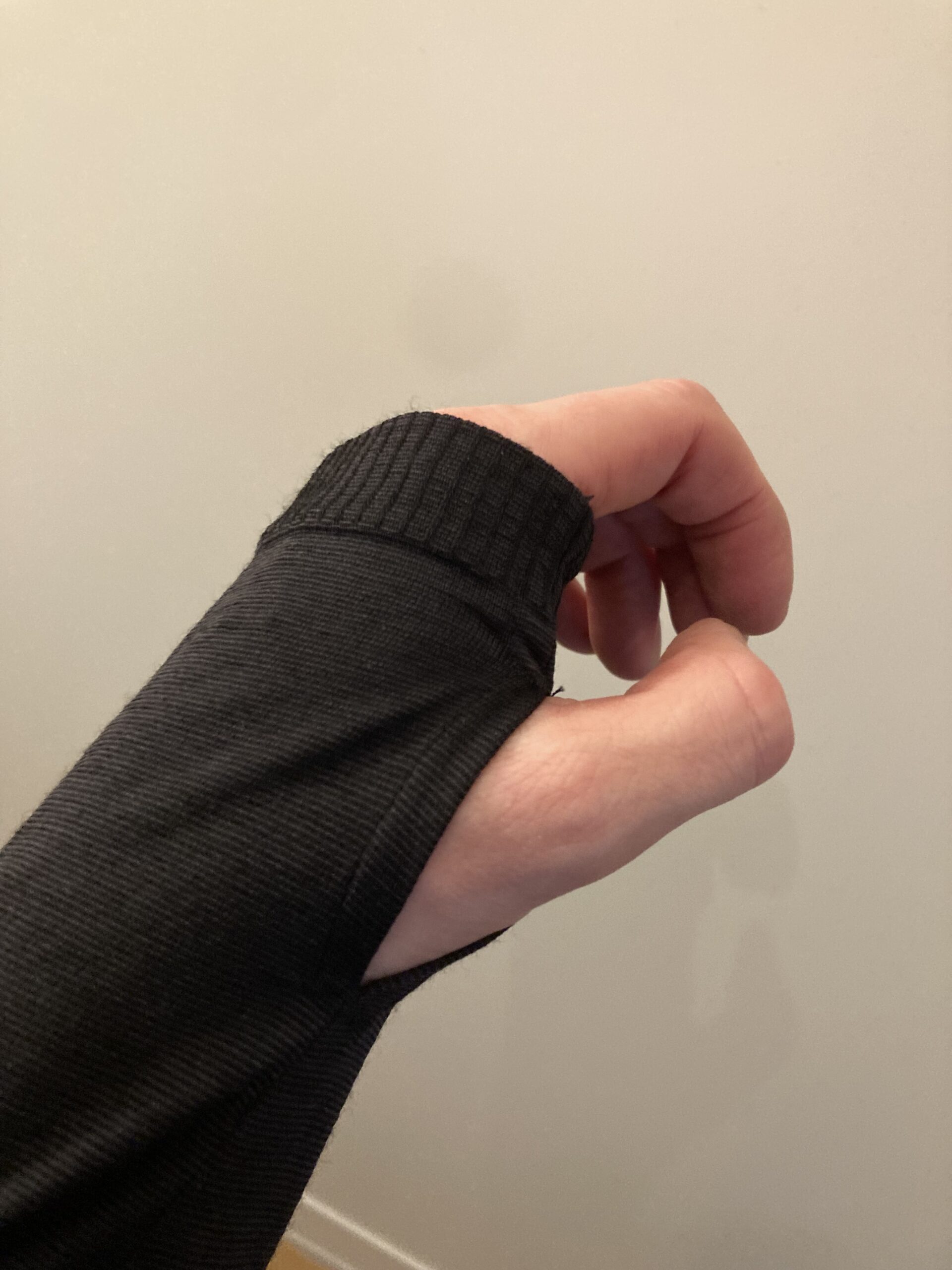 – Lite tunn, värmer inte lika mycket som de övriga, lite lång kanske.