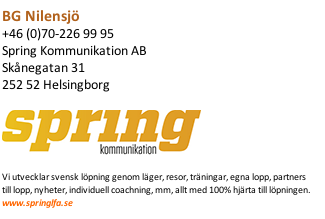 Spring – har reflekterat mycket över detta projekt. Jag är en ideell löparfantast, föreningslivet har påverkat mig naturligtvis. Alla andra affärer där har jag stenhårt fokus på affären, när det gäller Spring så är det helt andra värden som driver mig. Jag har dock insett att jag inte kan fortsätta betala för att producera och ge ut ett magasin, att inte tjäna pengar är ok, men inte att ta av sparat kapital. Med den inställningen har jag under de senaste två veckorna sökt en partner som vill bidra, partner får annonser, synlighet, etc – gjort olika fantastiskt bra paket. Men det är svårt, företagen har det tufft och än så länge är det ingen som har nappat. Parallellt har jag försökt hitta affärer som kan bidra med pengar till magasinet, just nu har jag tre allianser som ger små men ändå viktiga pengar. Ni får gärna stödja genom att utnyttja detta. Det är: