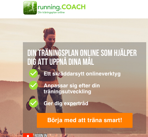Runningcoach.me: Ett online verktyg för att stödja din träning. De är otroligt stora i Schweiz och ger sig nu in på den svenska marknaden, vi är mediapartner. Alla får testa fritt men i steg två får vi en liten del av intäkterna.